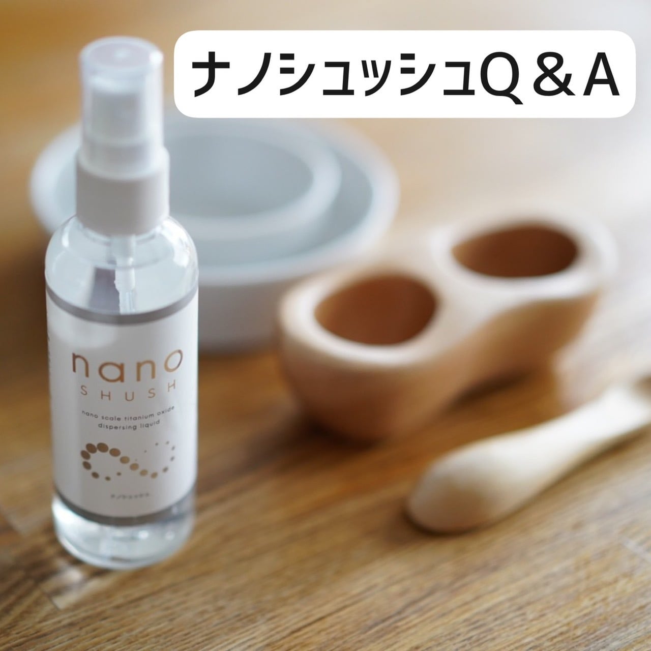 【商品内容】 nanoSHUSH-ナノシュッシュ- スプレーボトル100ml 持ち運びに便利な携帯サイズ いつでもどこでもシュッシュ!と使えます♪ あんしんサイズなので、家族でのお出かけや旅行などに最適です。 \ やさしさ製法で除菌をキープ nanoSHUSH / ◇ 光触媒で菌・ウイルスを分解除菌 ◇ 家族みんなでシュッシュ!と使える、やさしさ製法のずっと除菌スプレー。 いつまでも除菌がつづき、赤ちゃんやペットをやさしく守ります。 ◎菌やウイルスの感染力低下の試験クリア! ◎除菌やウイルス除去の効果や持続期間、安全性など数多くの試験もクリア! 詳しくはお気軽にお問い合わせください。 ◇ 成分はたったの3つだけ ◇ ○ 水 ○ エタノール ○ 酸化チタン 人にも自然にも無害な優しい成分のみで作られています。 ◇ 使用方法 ◇ ①スプレーしたい対象物から30㎝ほど離してスプレーしてください。 ②室内灯や太陽光が当たるところで乾かしてください。 ◇ おすすめの使用例 ◇ ・マスク、衣服、カバン、携帯 ・キッチン用品(まな板◎)、トイレ(便座◎)、玄関、ベッド ・赤ちゃんグッズ(哺乳瓶、おしゃぶり、スタイ、ベビーカーにも◎) ・ペット用品(おもちゃ、ゲージ、リードにも◎) ・ドアノブ、買い物かご、スーパーのカートなど不特定多数の人が触れるもの ※清潔にしたいもの、臭いが気になるものには、ナノシュッシュがオススメ◎ ◇ 保管場所 ◇ 光(室内灯や太陽光)があたる場所で保管してください。 菌やウイルスに、バイバイ菌。 心休まる和やかな暮らしを。 【販売元】 ナチュラルフリー株式会社 nanoSHUSH-ナノシュッシュ-